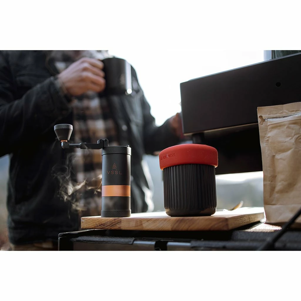 Why should life on the trail or a weekend in the wilderness mean going without your customary morning coffee? VSSL’s Java is the perfect accessory for dawn starts in the great outdoors. A hand coffee grinder designed with durability, portability and functionality in mind, it is crafted from sleek yet rugged aircraft-grade aluminium, with extendable grinder handles and an ergonomic grip. Inside, stainless steel burrs uniformly grind your beans rather than pulverising them, delivering a great cup of coffee every time. With 50 grind settings, it’s also versatile enough to be used with a variety of brew methods, wherever and however you like it