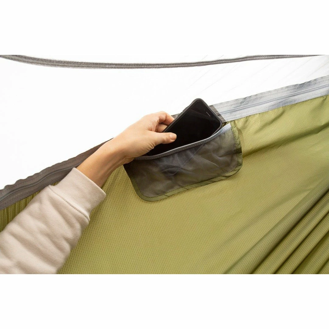 - Integrated stowable Bug Net constructed from SkyWeave Lite Mesh offers no-see-um insect protection and features two-way zippers with signature ENO pulls for easy entry and exit