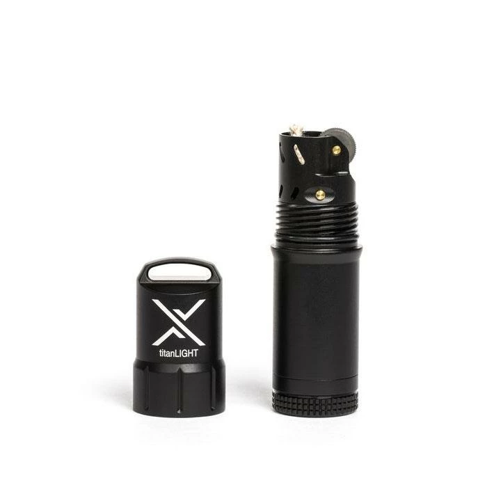 - Waterproof and evaporation proof thanks to an O-ring for each cap, which ensures the titanLIGHT is waterproof to >1 metre and the lighter fluid won’t evaporate
