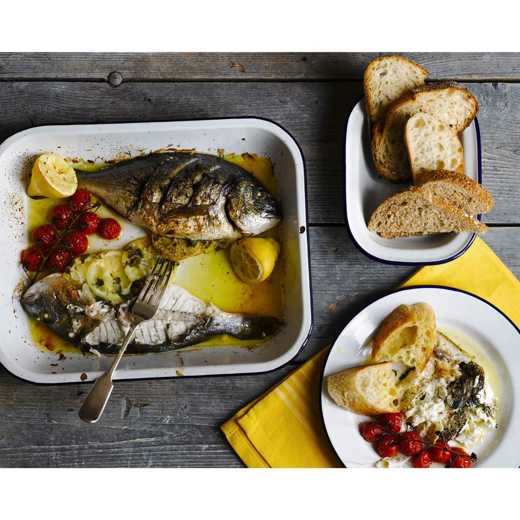 There’s nothing like the taste of simple, heart-warming home-cooked food. The only decision is what to make. A classic lasagne? Mum’s shepherd’s pie? Sunday roast? Whatever you decide to knock up, this five-piece enamelware bake set can handle it. It has the style and the looks to go straight from oven to table too, with Falcon’s signature ice white colourway and contrast rim pattern in bold, striking hues.