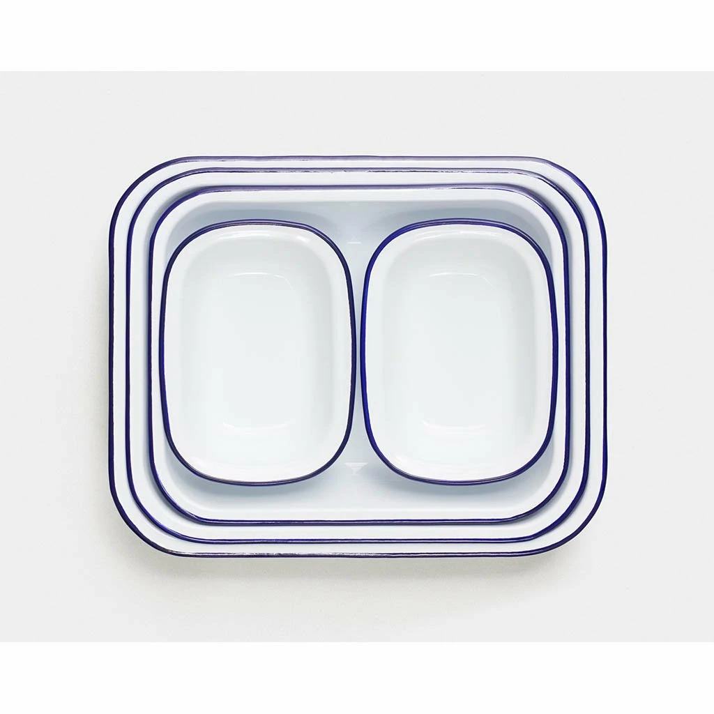 And when you think of enamelware, you probably think of Falcon’s iconic white dishes with a blue rim. They are instantly recognisable. And though it might look fashionably retro today, enamelware is ideally suited to modern life, from meals in the garden to family car camping.