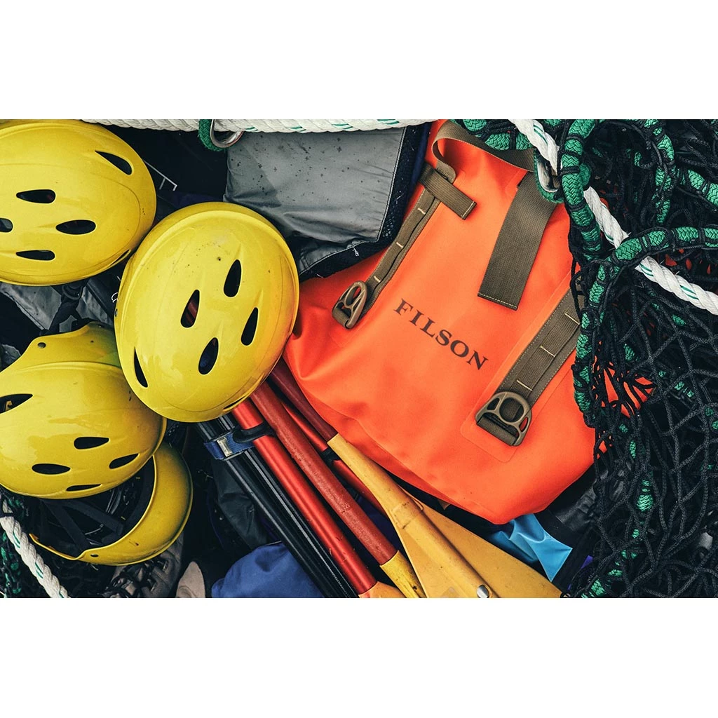 When legendarily rugged US heritage brand Filson use the slogan ‘might as well have the best’, they’re not joking. This roll-top tote bag is actually a heavy-duty drybag that features the same bomb-proof construction used in white water rafts. And just like its downriver cousins, this baby is geared up to take a LOT of punishment. Made in 84-denier nylon tarp fabric with TPU coating, the seams are RF-welded rather than glued – making sure it’ll stay 100% waterproof year after year. The 35-litre capacity makes it a good bit bigger than a standard tote, and the detachable padded shoulder strap means you can wear it as a satchel if you want. Ideal for anything boat-related, but just as good for cycling, fishing or slinging in the back of a Hilux