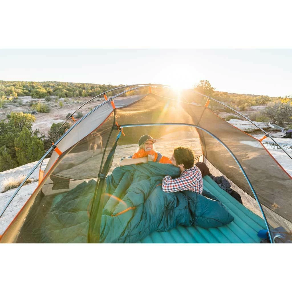 If you’re a snuggly sleeper but still like room to wriggle, then this is the bag for you. Wider than a standard double with a hood that accommodates two standard-sized pillows, the Tru. Comfort Doublewide gives each person their own personal snuggle blanket and foot vent. It also has a comfort-tuck zipper system so if you sleep hotter than your adventure partner, you can adjust your temperature without letting them get cold. Full of cosy Cloudloft synthetic insulation the Tru. Comfort Doublewide will keep you warm even during cooler nights.