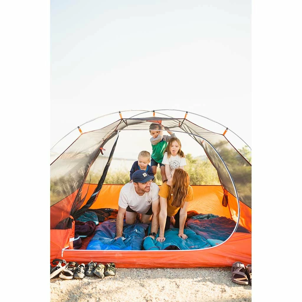 The Rumpus is designed with luxe camping in mind. It’s a great tent all round, but the most notable feature is definitely its palatial porch. It’s huge! So, whether you want a tent that can accommodate your dog without needing to have them sleeping nose to nose with you, or you want somewhere to keep your bike out of the elements, or just want to bring everything including the kitchen sink for the ultimate car camp, this is a great tent. The sleeping section of the tent is roomy too – so you won’t feel like you’re cramped even once you’ve zipped up for the night. It’s the perfect tent for a sociable camp with friends, or a luxury spacious camp with your other half