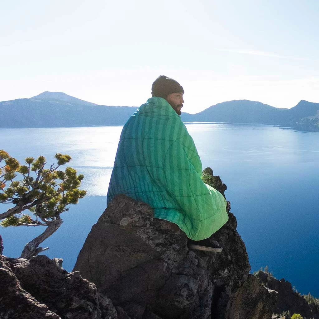 If you’re looking for lightweight warmth, most people will tell you it doesn’t get better than natural down. They’re right, but down also has a few, ahem, downsides. For one, it doesn’t insulate so well if it gets wet. And it needs looking after pretty carefully to maintain optimum performance. That’s fine for a prized sleeping bag, but maybe not so good for an outdoor blanket that might get beat up on the trail. That’s why Rumpl came up with their Nanoloft insulation: a loose synthetic fill that looks and feels a lot like down, but which is much more hardwearing and far easier to look after. The result is a lightweight but warm take-anywhere, do-it-all blanket for all your adventures, big and small. With a ripstop shell and insulation made from 100% recycled materials, it’s not only warm and durable, it’s a sustainable choice too