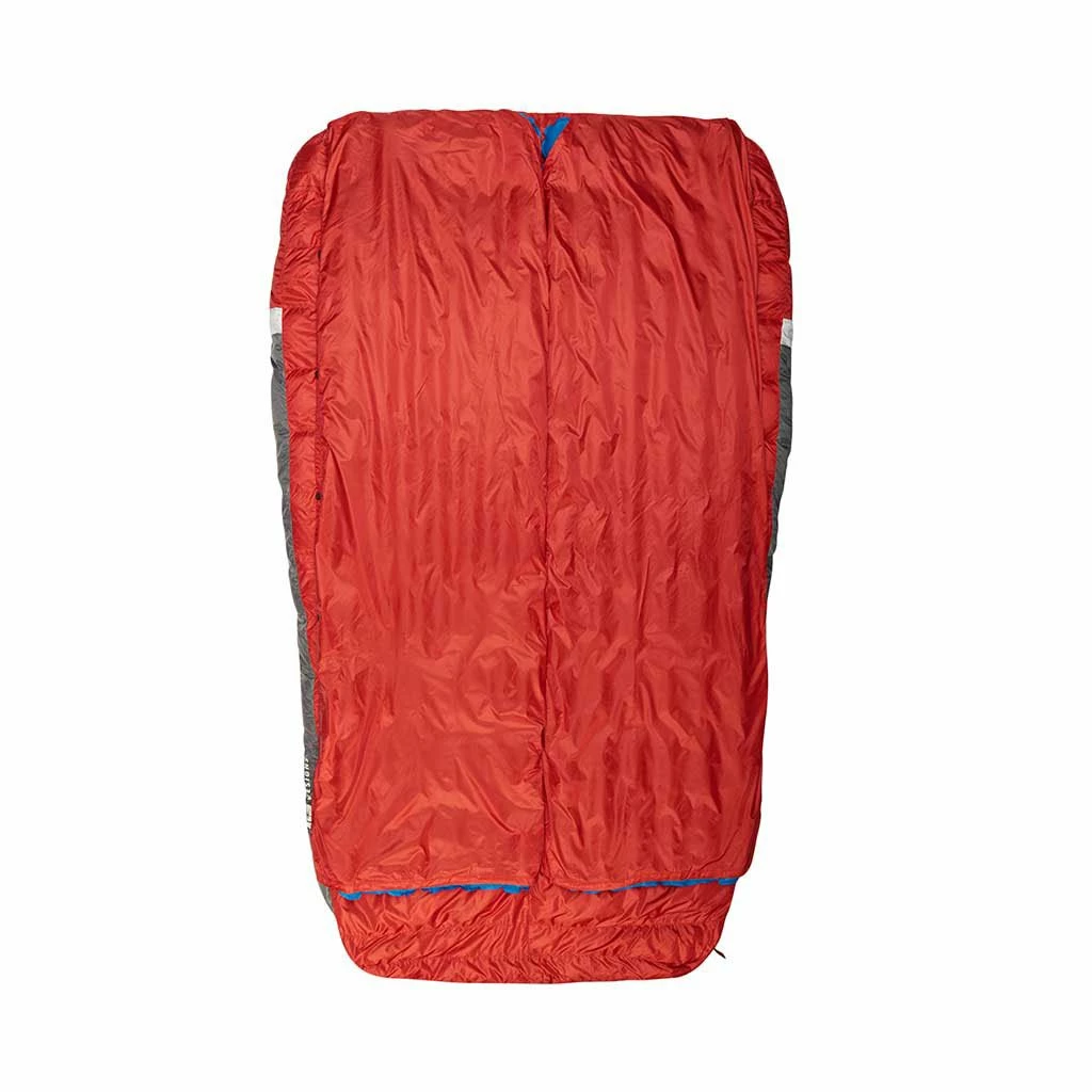 The unique Backcountry Bed gives you the feeling of nestling down for a night in your bed rather than squeezing into a sleeping bag together. There are no zips, no toggles and no Velcro, just pure comfort. On the back there’s a half mat sleeve, which acts like a fitted sheet. Slide your sleeping mat or mats in and this provides a bed-like structure so you and your partner can sleep comfortably or change positions in the night without waking each other up. The oversized blanket adds to the luxury feel – use it like a quilt or tuck it inside to get the performance of a traditional sleeping bag for those cooler nights. With 650 fill-power moisture resistant down you’ll stay warm even when the temperature drops to single digits