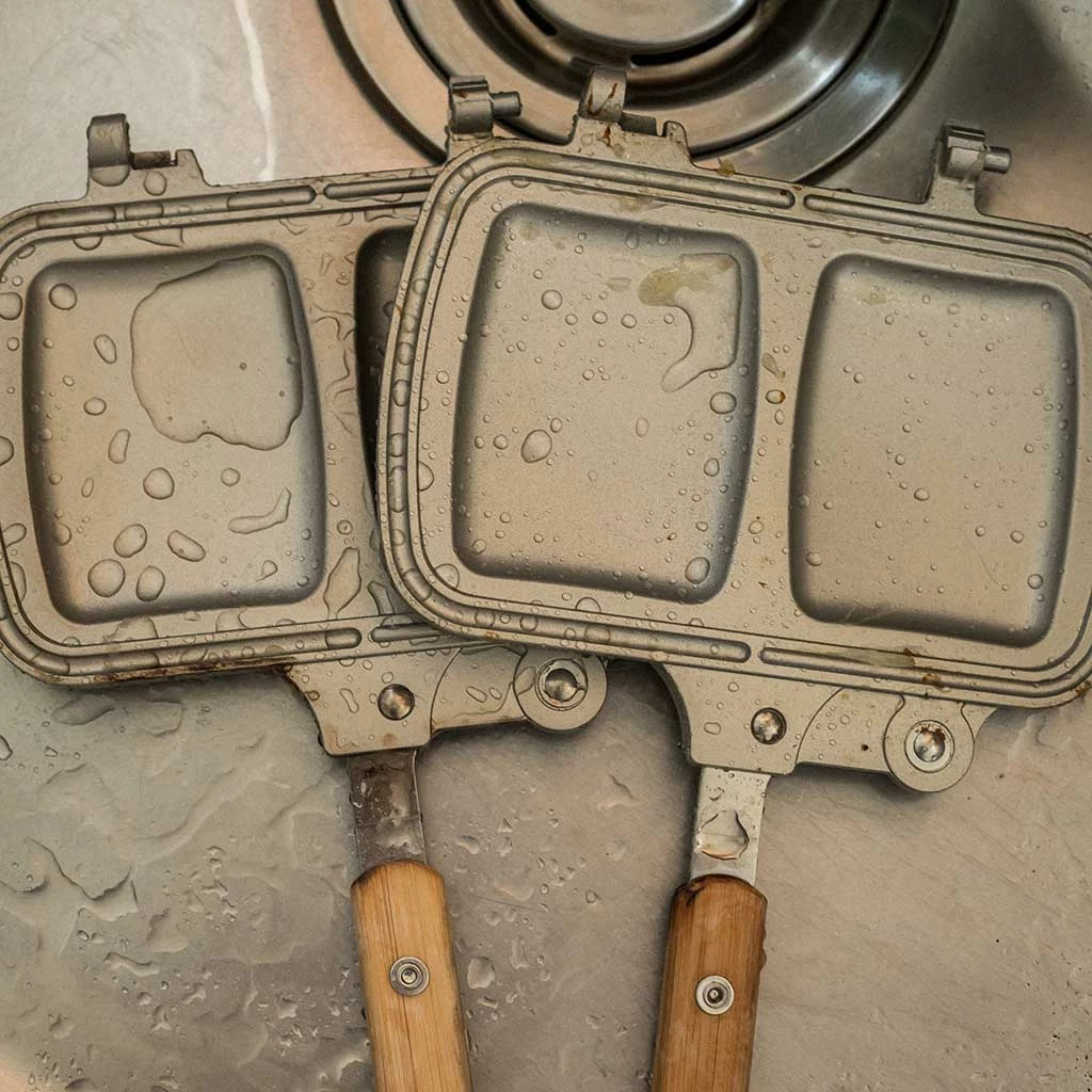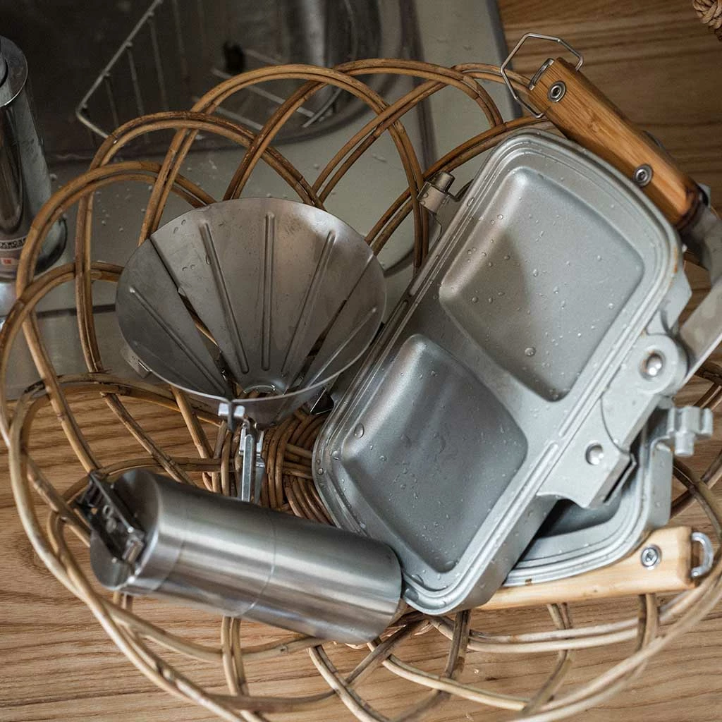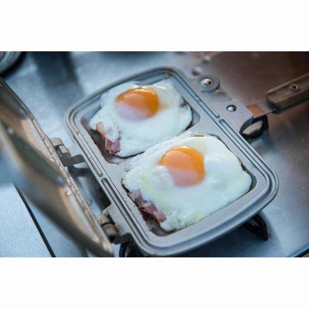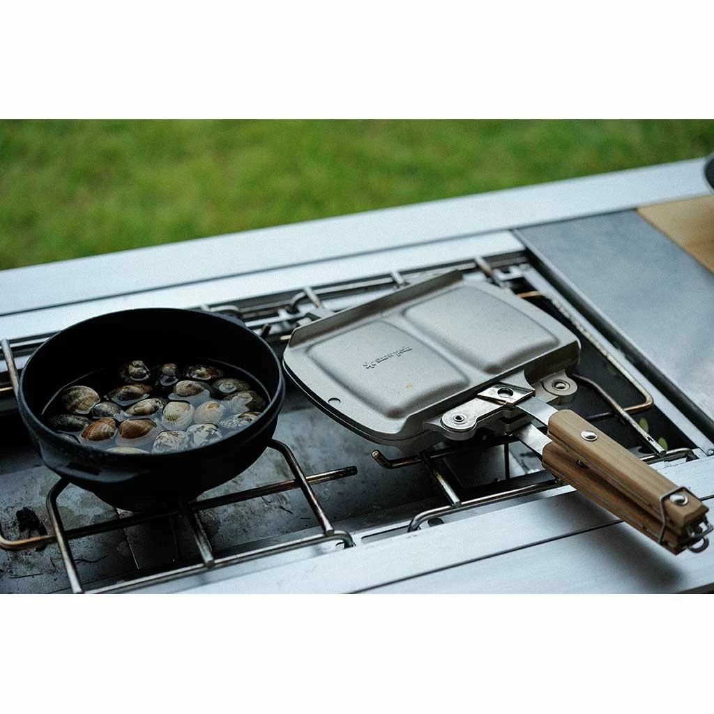 As far as we’re concerned, a grilled cheese toastie is one of life’s greatest pleasures. Now you can bring perfect toasted sandwiches to your camp with Snow Peak’s Tramezzino sandwich maker. Constructed from robust stainless steel and lightweight yet durable aluminium, the versatile design will work over a campfire, on a grill or BBQ, or even over a double burner camping stove. It’s ideal for camp, home or garden use. The bamboo handle also features a locking catch to keep it securely sealed shut when it’s time to flip it over. The handles fold away ingeniously, and the two grill plates are detachable for easy cleaning and compact, packable storage