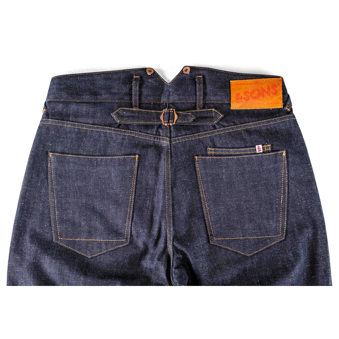 Includes the &SONS signature ‘chore’ pocket on the right and denim cinch strap on both turn up’s for all you riders out there.