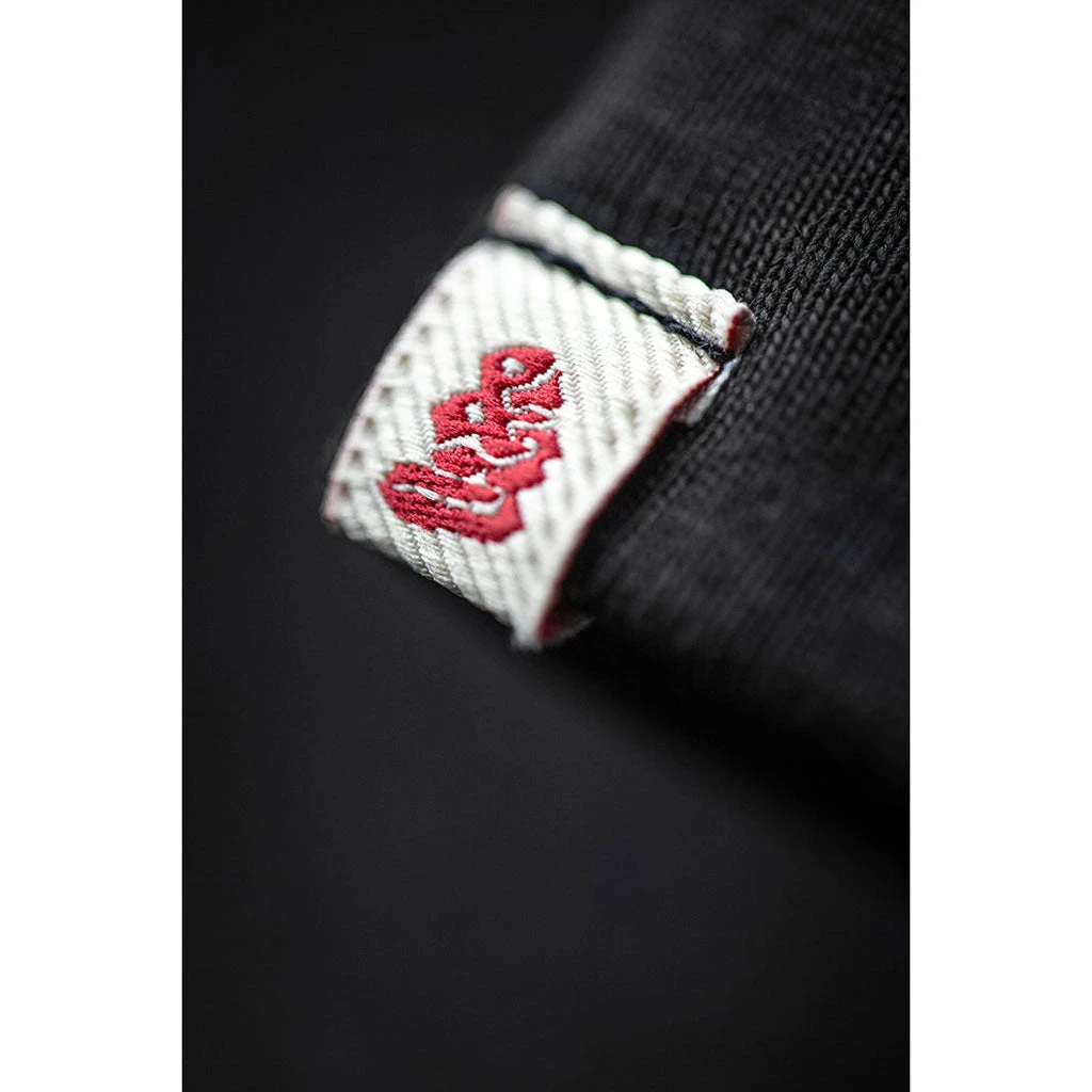 - Overlock top stitch secures bottom shirt trim