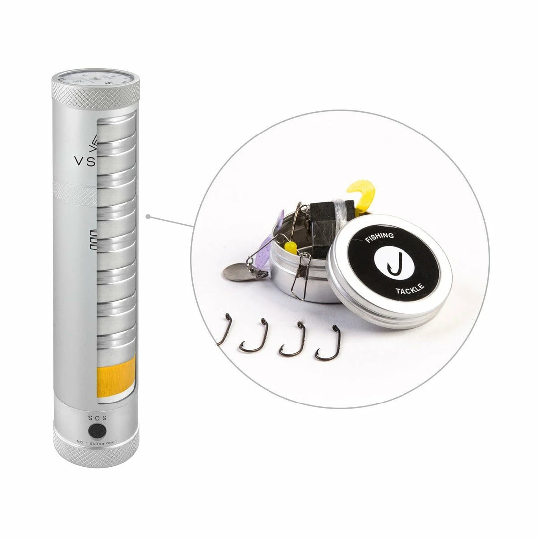 - The ultimate compact adventure kit with LED survival torch