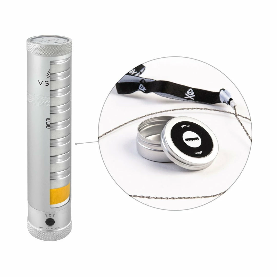 Packing more outdoor supplies than you can shake a whittled stick at (seriously, see the ‘Contents’ list), and with a military-grade, aluminium casing and built-in survival torch – this survival cache is your ultimate camp supplies adventure kit – your peace of mind in the outdoors. In their partnership with Finnish tech-wizards Suunto, VSSL have taken it a step further. This special edition Camp Supplies features a precision-engineered Suunto compass, reliably operating from -30℃ to 60℃, so you can guarantee that your gear will keep up with your adventures, wherever they take you.